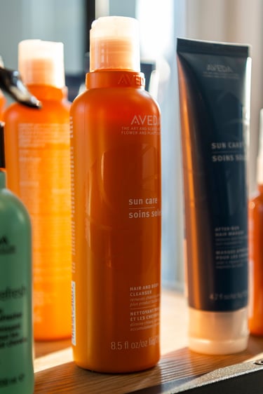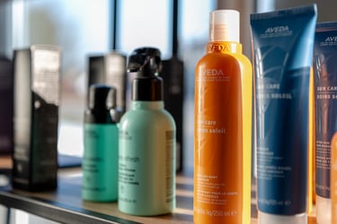 Verwendung von hochwertigen, nachhaltigen Aveda-Produkten für ein umweltbewusstes Erlebnis.